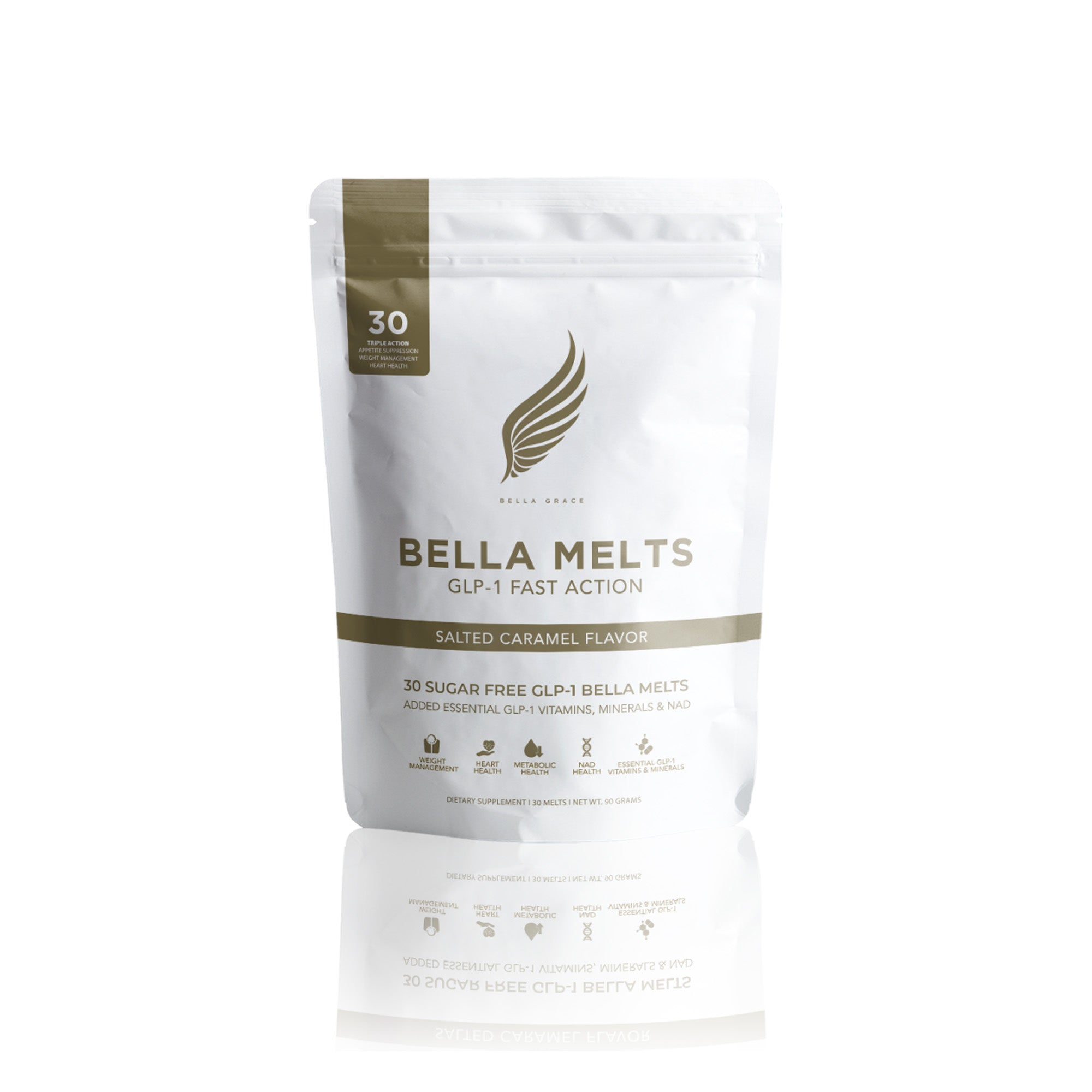 Bella Melts é um delicioso doce de caramelo com poderosos ingredientes botânicos e nutrientes essenciais. Cada pastilha sem açúcar atua naturalmente no seu corpo para ativar o GLP-1, ajudando-o a sentir-se saciado mais rapidamente, manter-se satisfeito, acalmar os desejos e queimar mais calorias.