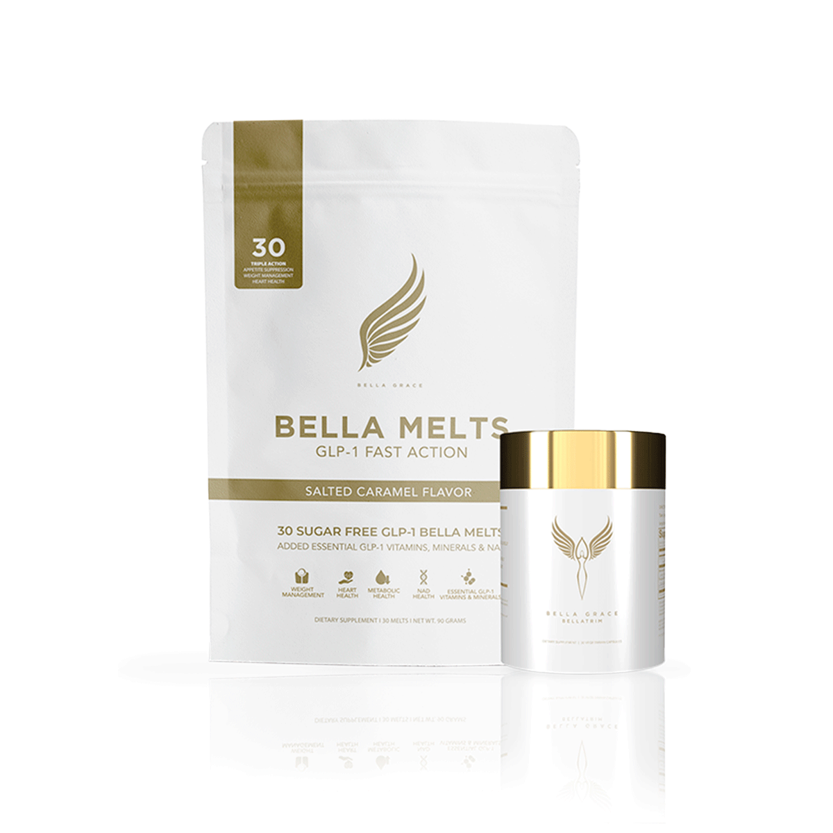 Esta combinação ativa naturalmente a produção de GLP-1 do seu corpo, sem agulhas ou efeitos colaterais agressivos. Juntos, Bella Melts e BellaTrim apoiam uma abordagem mais inteligente e sustentável para o controlo de peso, acalmando os desejos, reduzindo os hormônios do stress e apoiando a saúde metabólica.